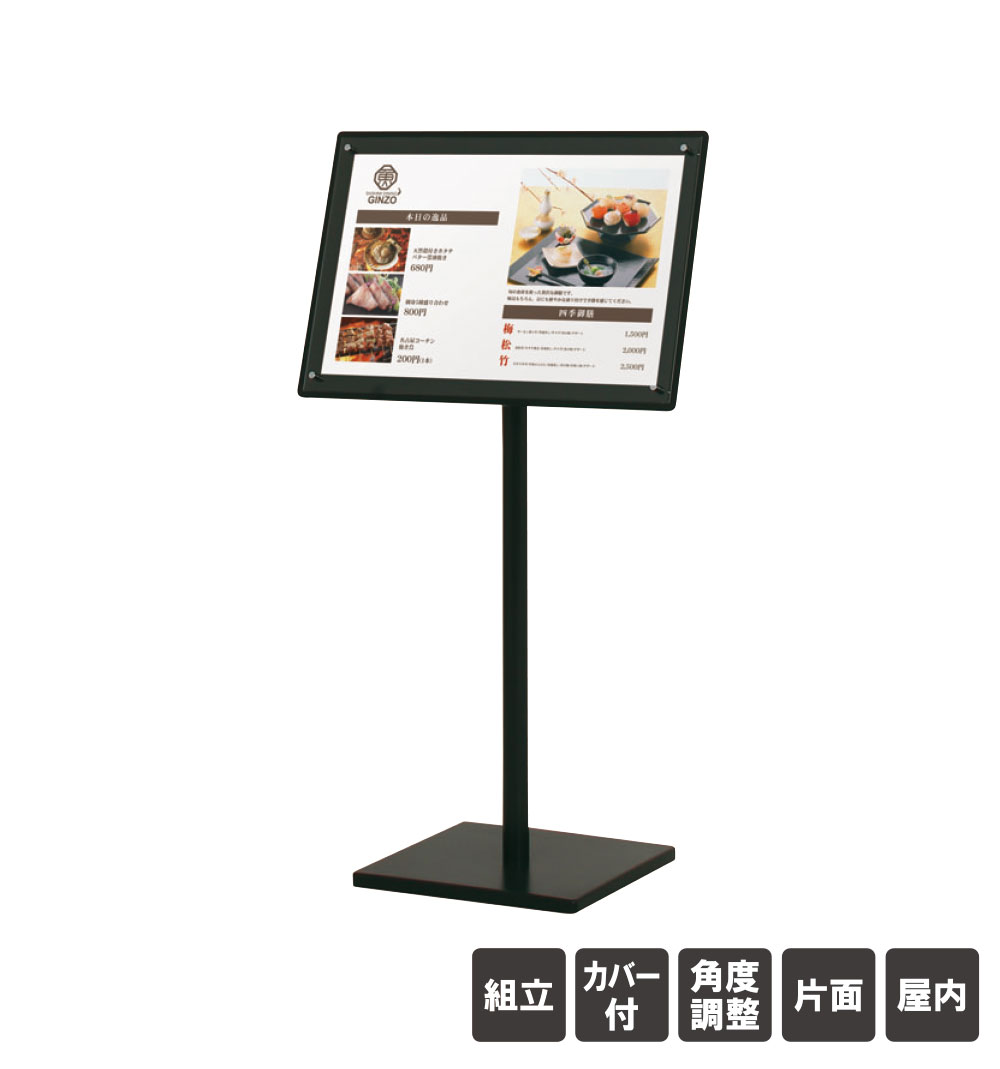 ▼ 送料無料 メニューサイン 角度調整機能付き / 屋内 スタンド看板 メニュー看板 メニュースタンド メニュー立て 店舗用看板 立て看板 スタンドサイン MSX-43