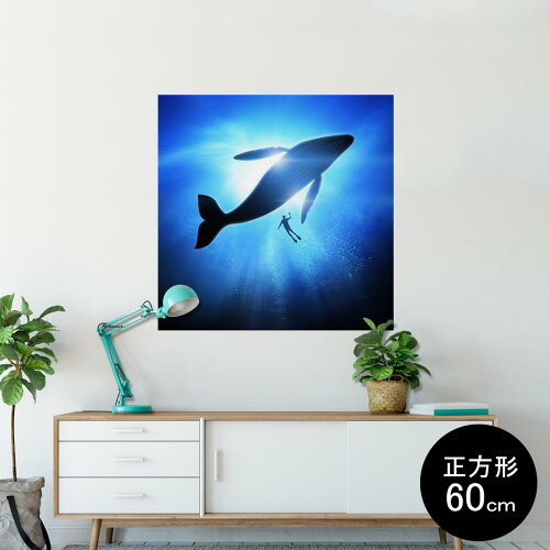ポスター ウォールステッカー シール式ステッカー 飾り 60×60cm Msize 正方形 壁 インテリア おしゃれ 剥がせる wall sticker poster 012663 クジラ シルエット ダイビング